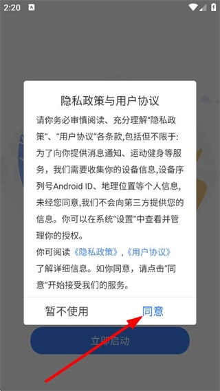 1、在用户协议弹窗中,点击同意,进入登录页面。