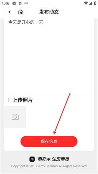 4、填写完动态内容后,点击底部【保存信息】按钮,可完成该条动态的发布操作。