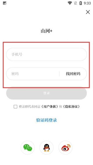 4、若切换为账号密码登录,需填写【手机号】与【密码】,也可通过【找回密码】功能重置密码。