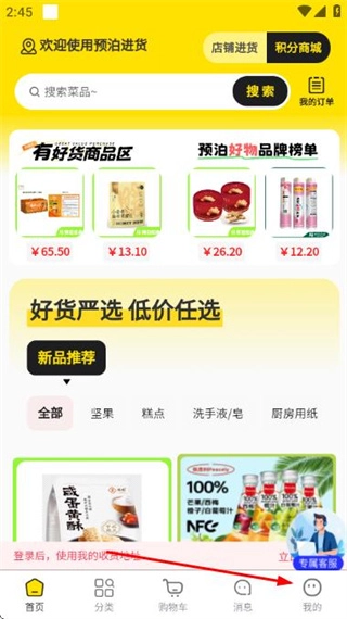 1、在预泊进货首页点击底部的“我的”,即可进入欢迎登录页面。