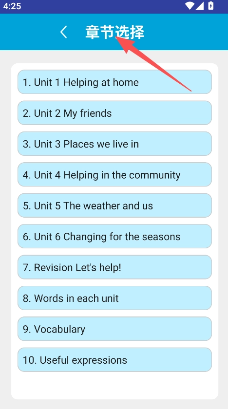 1、拥有章节选择功能,可支持单元章节的选择,能让学生更便捷地按照单元来进行学习。