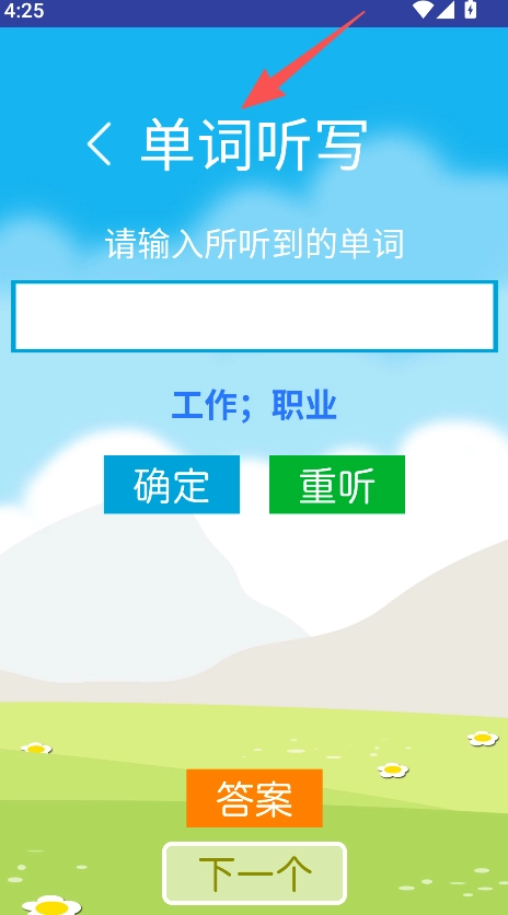 2、参与单词听写,输入听到的单词,进行单词练习。