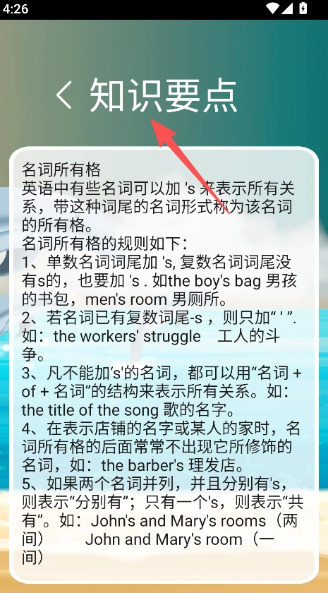 3、查看知识要点,学习语法等知识,巩固英语要点。