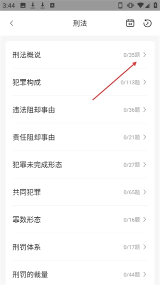 3、在刑法科目页面点击【刑法概说】右侧的练习入口。