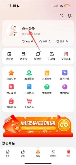 2、在个人页面,点击点击登录选项,进入登录页面。