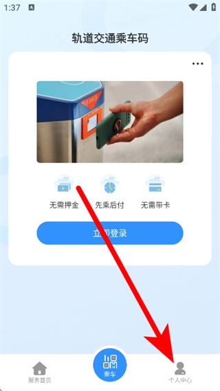 1、打开东莞地铁应用,点击底部的“个人中心”选项,即可进入个人中心页面。