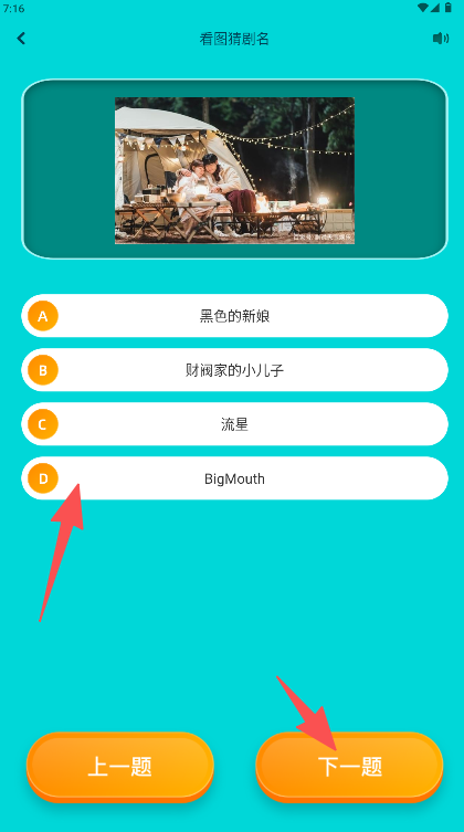 3请从选项里选出你觉得正确的剧名,再点击页面底部的“下一题”按钮,就能继续进行猜剧挑战啦。