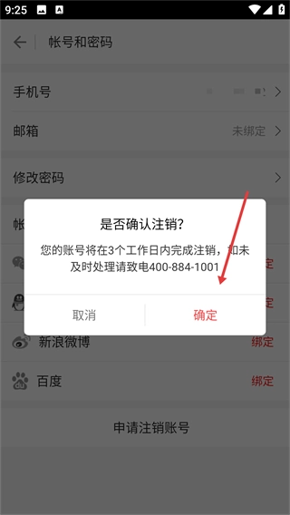 4、在弹出的“是否确认注销?”弹窗中,点击【确定】按钮,提交账号注销申请。