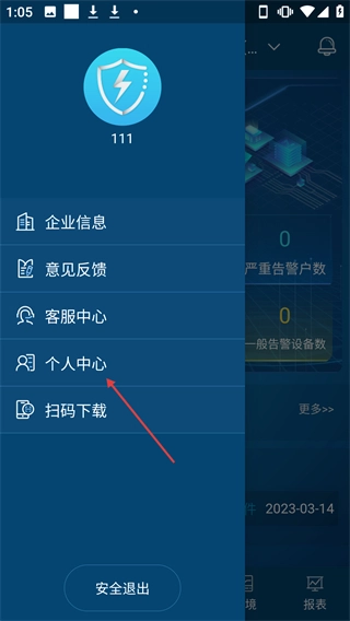 2、在展开的侧边栏里,点击【个人中心】选项,即可进入对应的页面。