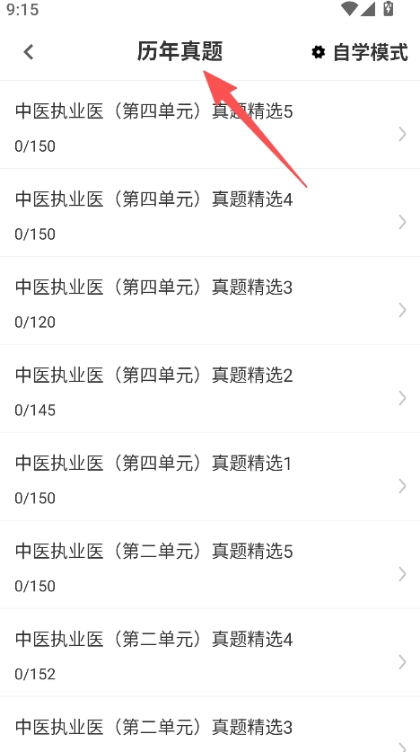 1、设有历年真题选择功能,进入对应板块后,可选择中医执业医师各单元的真题精选,进而进入对应练习内容页面。