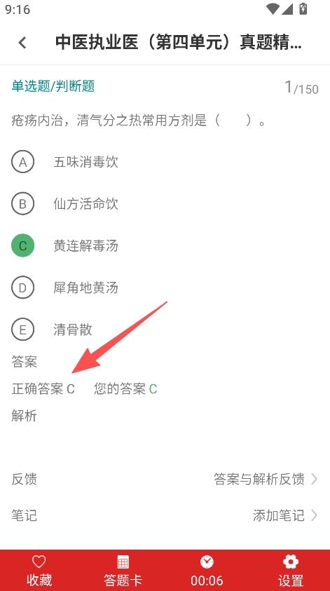 3、每道题目都配有正确答案和详细解析,用户还可以添加个人笔记并收藏题目,这样既能帮助理解知识点,又能巩固所学内容,进一步完善了真题练习的辅助功能环节。
