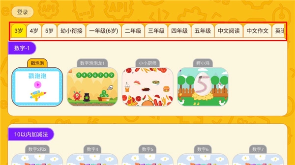安装软件,进入后在顶部选择孩子的年龄和学习阶段。