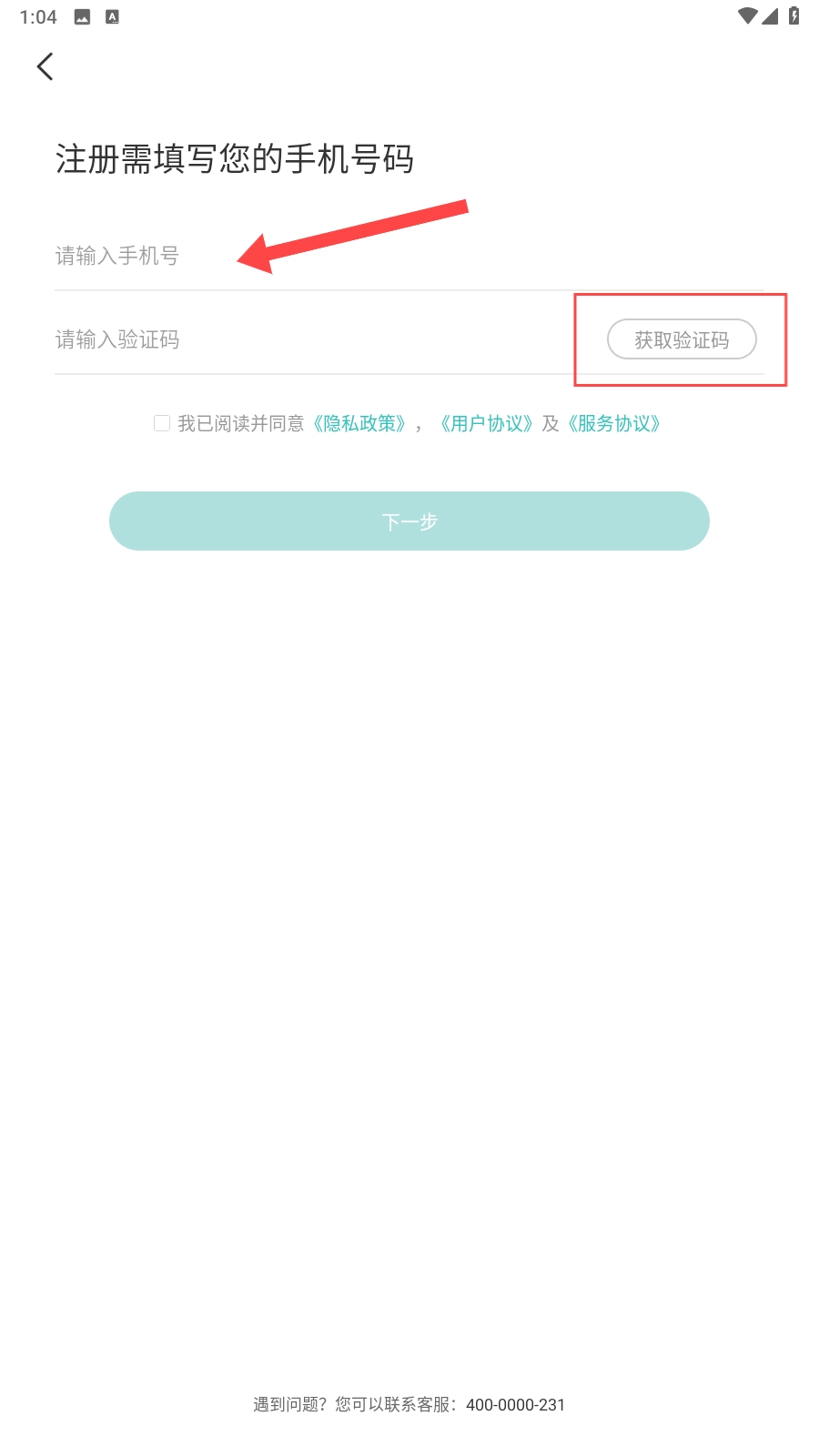 3、在注册界面,输入【手机号】获取【验证码】填入即可注册成功
