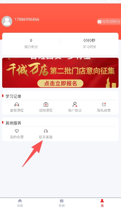 3、集成学习可记录与客服的联系情况,用户能够查看历史学习内容,还能通过扫码添加客服,进而进行咨询沟通。