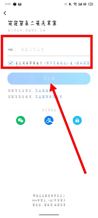 3、在注册页面,输入手机号,勾选后,点击下一步。