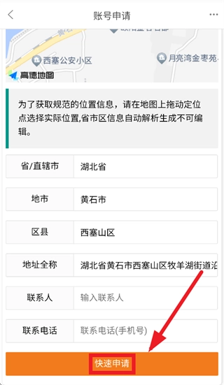 在账号申请界面按要求输入信息,点击快速申请即可
