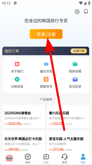 1、打开韩国指南,进入主界面后,点击右下角我的。