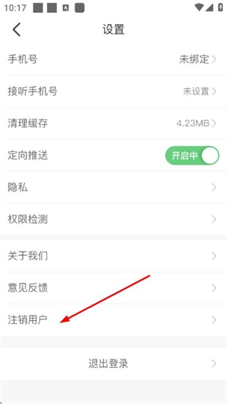 3、进入设置页面后,找到并点击“注销用户”选项,即可跳转至用户注销协议页面。