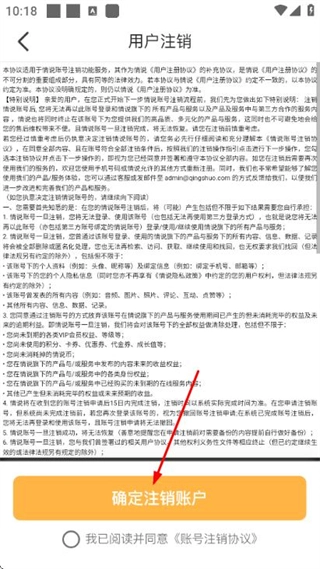4、用户在注销页面勾选账号注销协议后,点击“确定注销账户”按钮,即可完成注销操作。