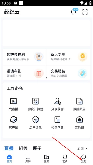 1、在经纪云首页,点击底部的“我的”选项,即可进入个人中心页面。