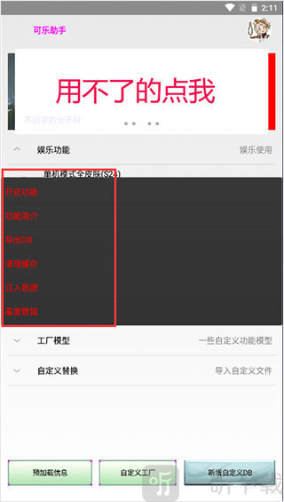 5.其中自定义工厂需通过考试方可使用,考试入口位于软件内,激活时会有提示,且自定义功能添加的DB会显示在自定义替换分组的下方。