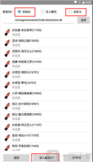 3. 找到目标皮肤并点击调整,调整完毕后点击“生成DB”按钮,系统会自动将DB文件保存到SD卡的/db/out文件夹中;也可选择注入模式,该模式需在游戏运行时操作。