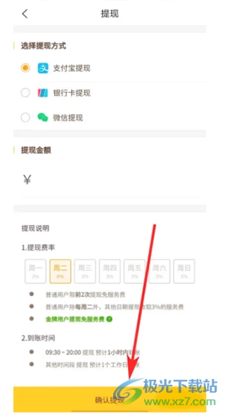 4、然后选择提现方式和提现金额,点击“确认提现”即可。