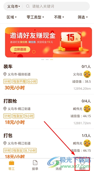 5.可以按照区域以及零工类型筛选查找