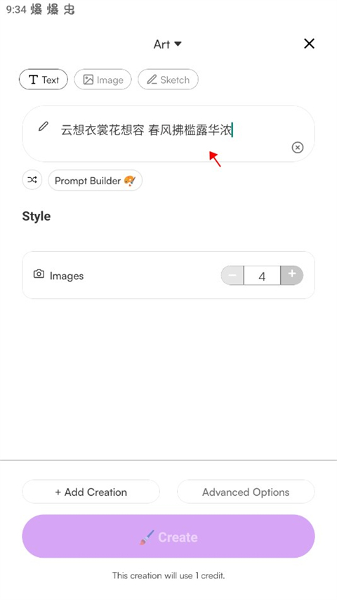 2、在文本框中输入期望的艺术风格及绘画主题描述。