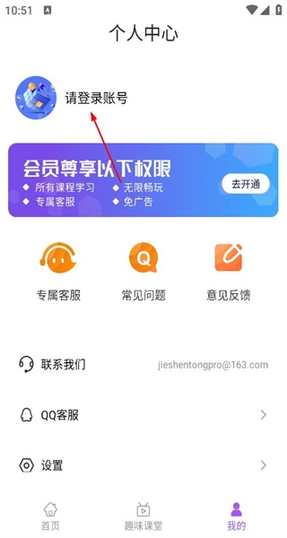 2、进入个人中心页面后,能看到“请登录账号”的提示以及会员权限等相关内容,点击这个提示区域就可以进入登录界面。