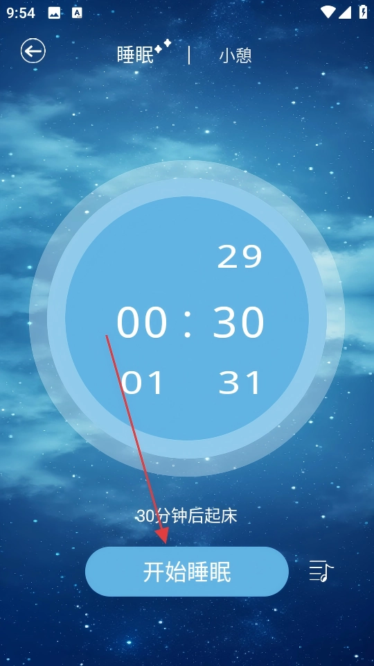 3、在睡眠计时页面,设置好时间后,点击【开始睡眠】按钮,启动睡眠计时。