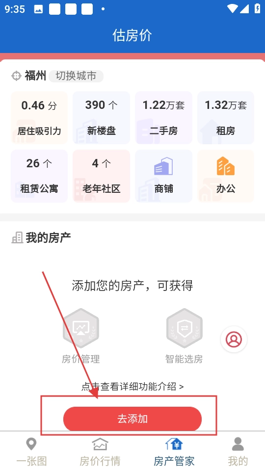 1、点击【去添加】按钮,进入房产信息录入界面,即可开始填写房产相关信息。