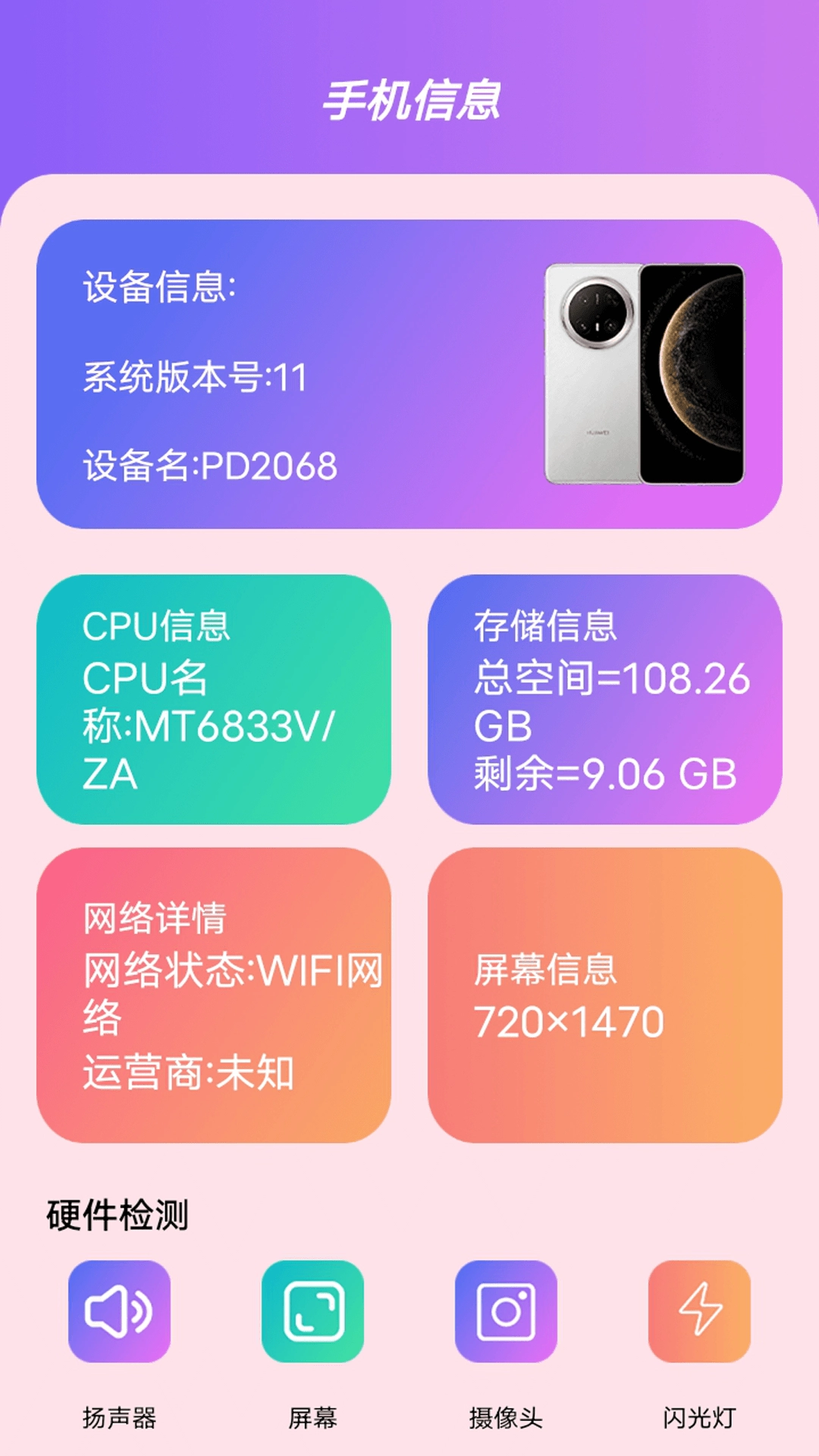 1、它配备了一系列硬件检测工具,用户能够便捷地测试扬声器、屏幕、摄像头和闪光灯等硬件的性能。