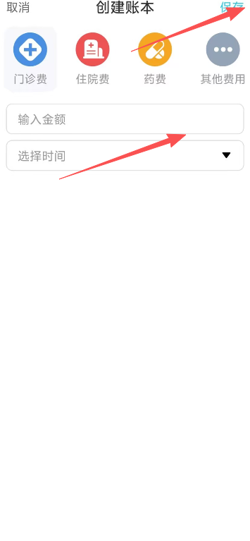 3、在账本界面选择需要记录的费用类型并输入金额与时间,即可成功保存