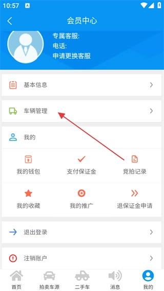 2、进入会员中心后,点击【车辆管理】选项,即可进入车辆管理页面。