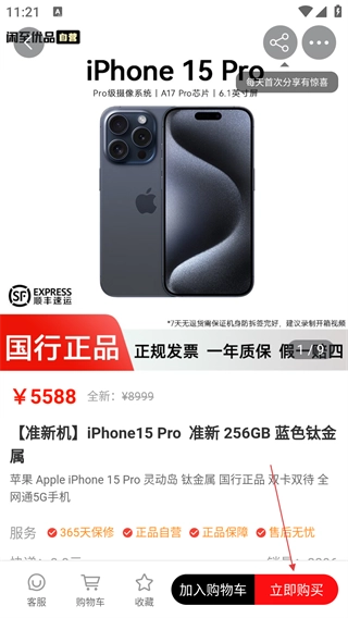 3、进入产品详情页面,查看产品的价格、规格等相关信息后,点击【立即购买】按钮。