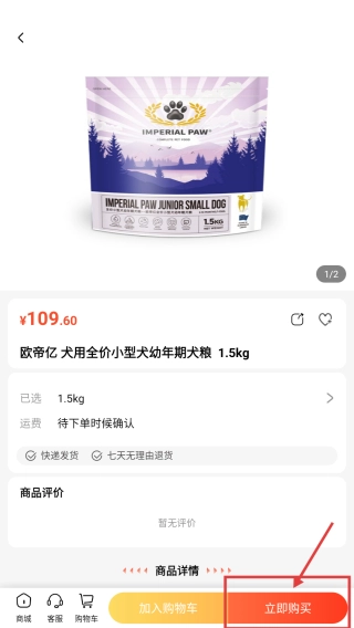 4、在商品详情页中,点击“立即购买”按钮,即可启动商品购买流程。