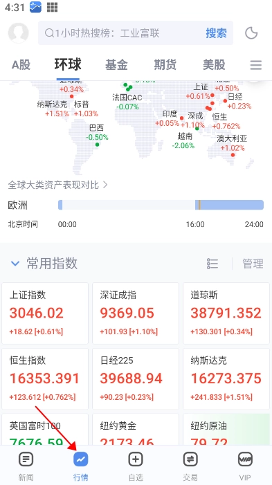 1、打开好的,点击行情。