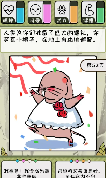 -每个选项都会触发各类事件,影响竹鼠的命运。