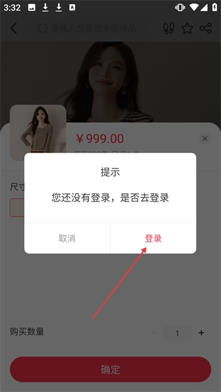 4、在提示框中,点击【登录】,完成登录后即可继续下单流程。