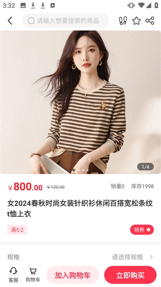 1、在进入软件,点击“女2024春秋时尚女装针织衫”商品,进入详情页。