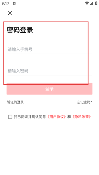 4、切换到【密码登录】界面后,依次填写【请输入手机号】【请输入密码】,点击【登录】按钮完成账号登录。