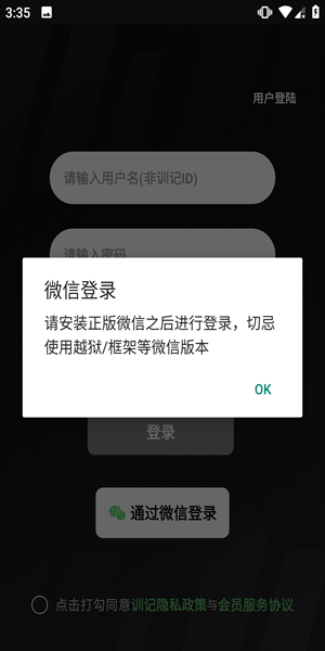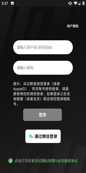 2、这里将训记隐私政策勾选之后可以点击用户登录。