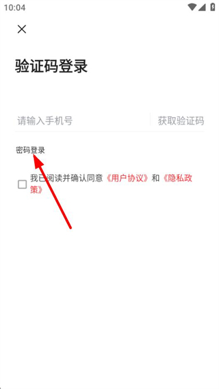 3、在验证码登录界面,点击密码登录选项,可切换至密码登录页面。