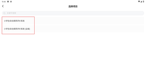 3、进入【选择项目】界面,从列表内选取对应的【小学生综合素质评价系统】项目,进入对应系统。
