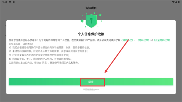 1、阅读【个人信息保护政策】内容,点击【同意】按钮,确认接受协议条款,进入后续流程。