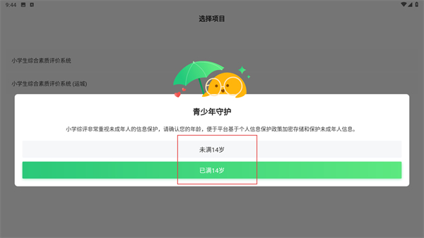 2、在【青少年守护】界面,根据实际年龄选择【未满14岁】或【已满14岁】,完成年龄认证。