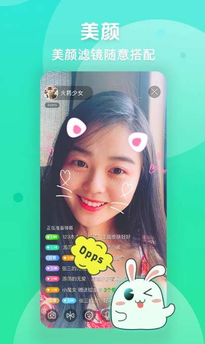 功能介绍:支持看剧、摄影等三大类型直播,主播只需一键即可开播并与粉丝实时互动;配备美颜滤镜功能,操作便捷且功能强大,同时能保障高清的直播画质和低延迟的观看体验。