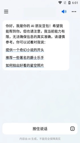 豆包是由北京春田知韵科技重磅推出的一款AI人工智能软件,豆包既可以为用户回答任何领域的问题,同时也能通过用户的话语去生成对应场景的图片,对文字内容的理解以及还原度很高,是2025最受欢迎的AI人工智能之一。无论是工作、生活、还是学习等方面,豆包这款AI软件都能很好帮助到用户,成为你的得力助手,深受人们的喜爱。豆包可以帮助你完成各种不同的服务,享受完全不一样的人工智能服务吧。豆包之中还有各种不同的人工智能服务,通过豆包你可以很快的总结一篇文章之中的主要重点都是什么,享受更加迅速的总结性服务,以更快的玩耍一系列的文本制作。