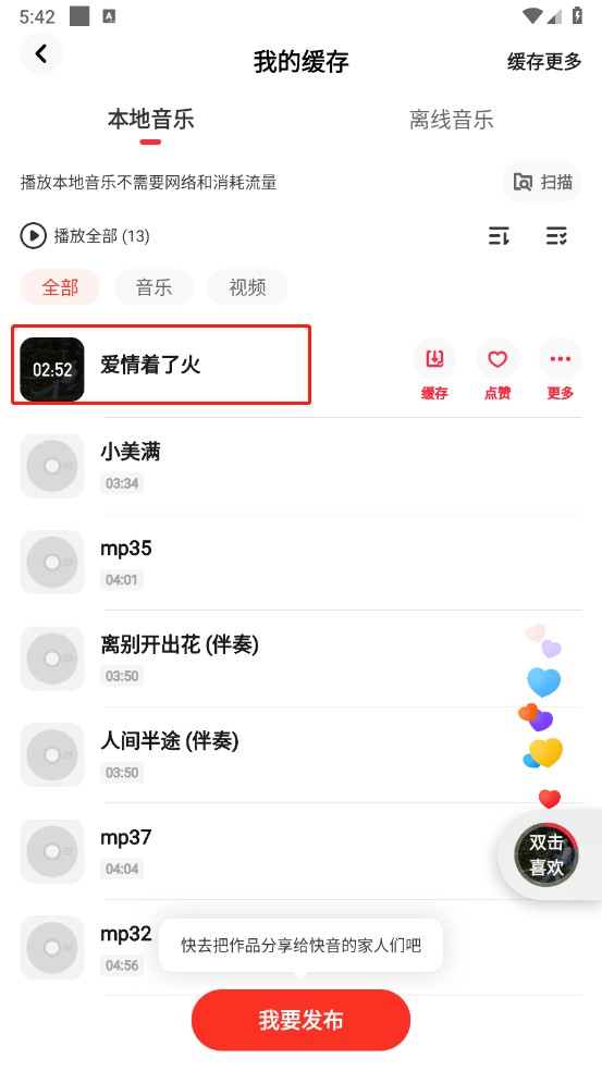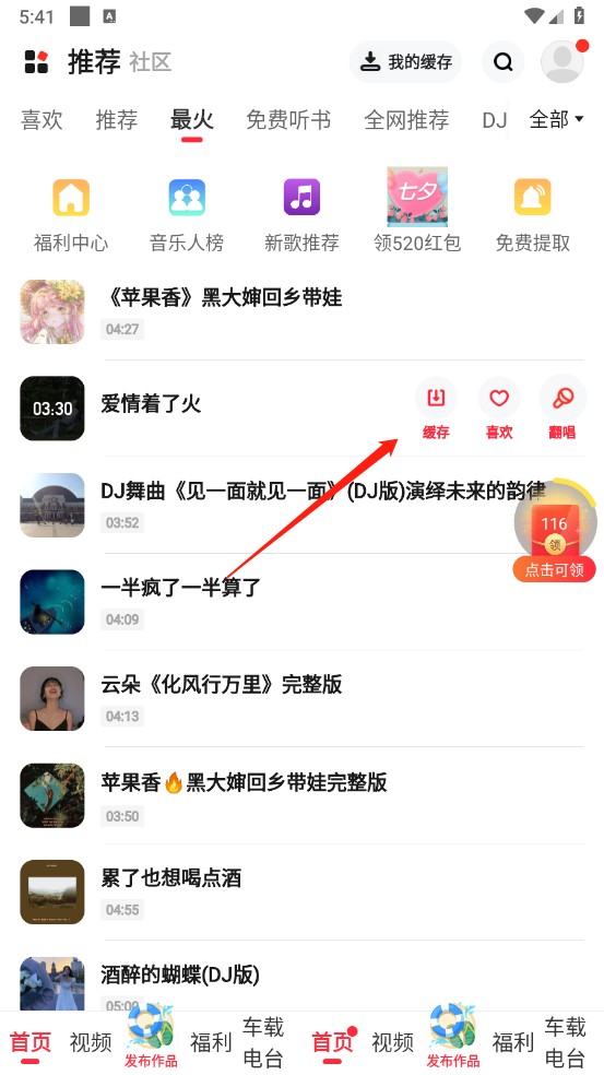3、已缓存的音乐可点击左上角的“我的缓存”查看。